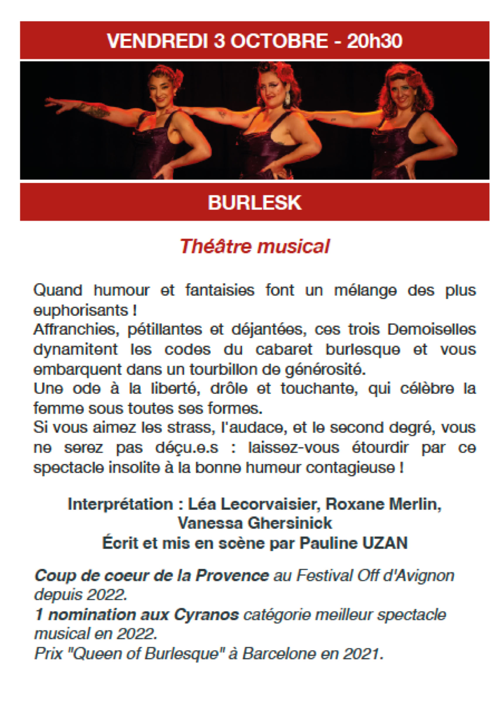 VENDREDI 3 OCTOBRE 20H30